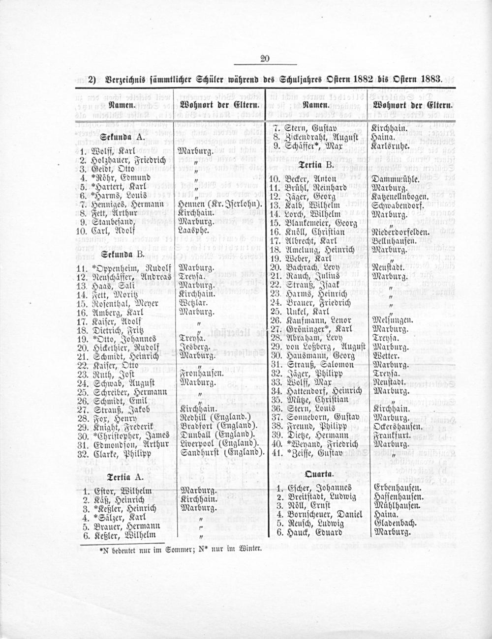 Programm des Realprogymnasiums (Realgymnasium ohne Prima) in Marburg