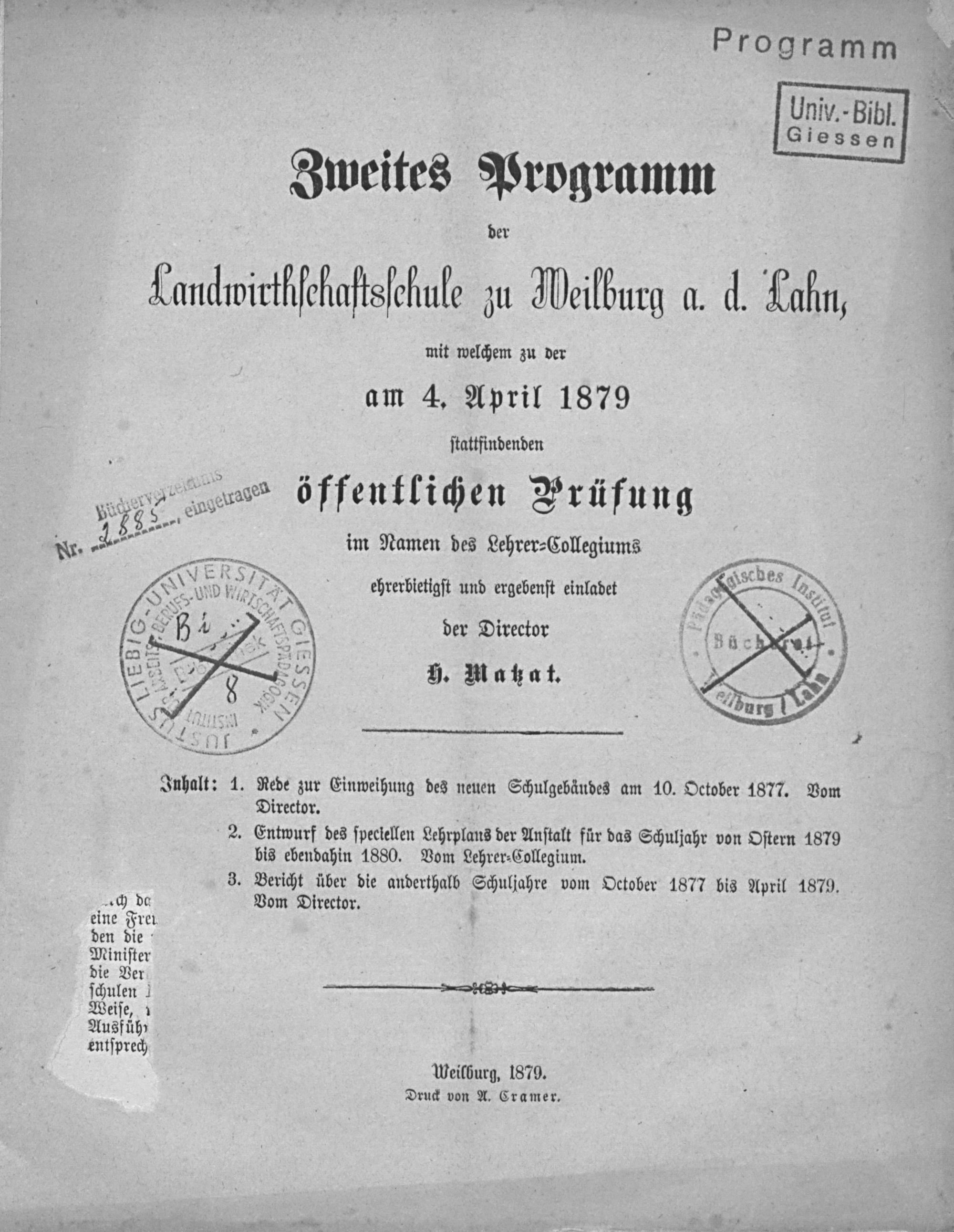 Rede zur Einweihung des neuen Schulgebäudes am 10. Oktober 1877