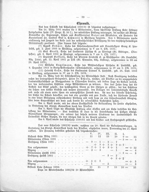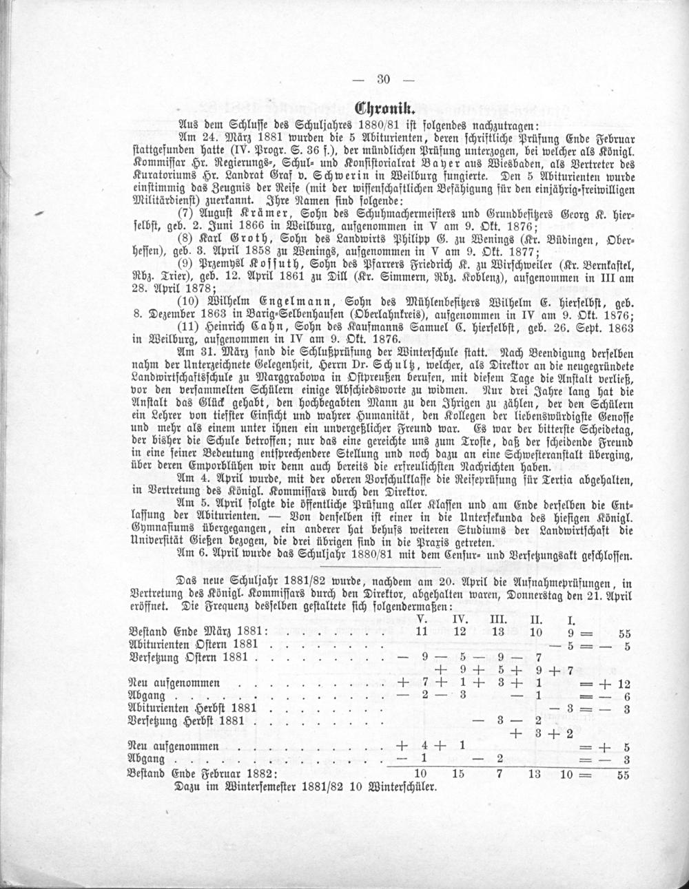 Programm der Landwirtschaftsschule zu Weilburg an der Lahn, mit welchem über das Schuljahr ... berichtet