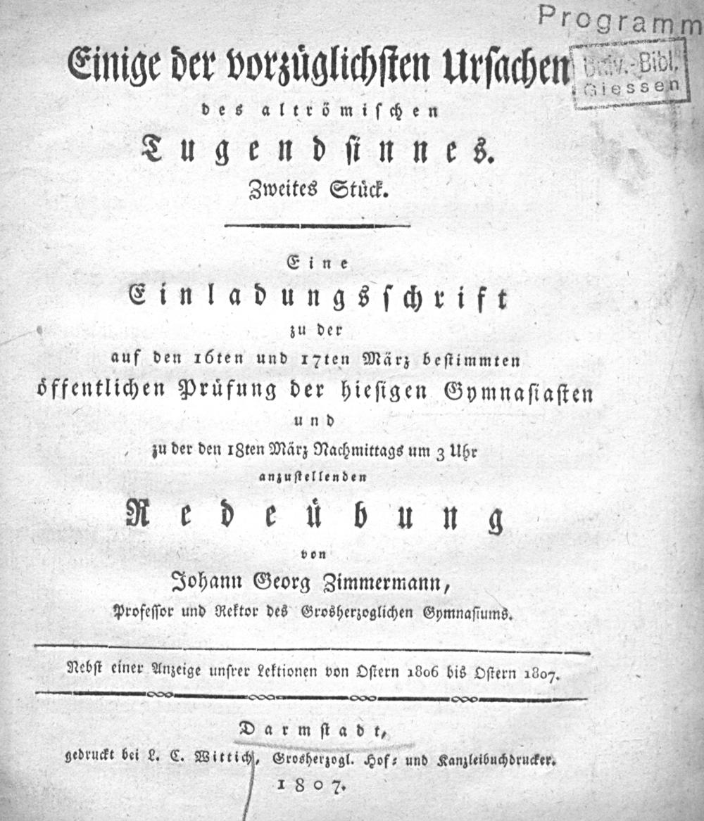 Einladungsschrift zu der auf den ... bestimmten öffentlichen Prüfung der hiesigen Gymnasiasten und zu der den ... um ... Uhr anfangenden Redeübung