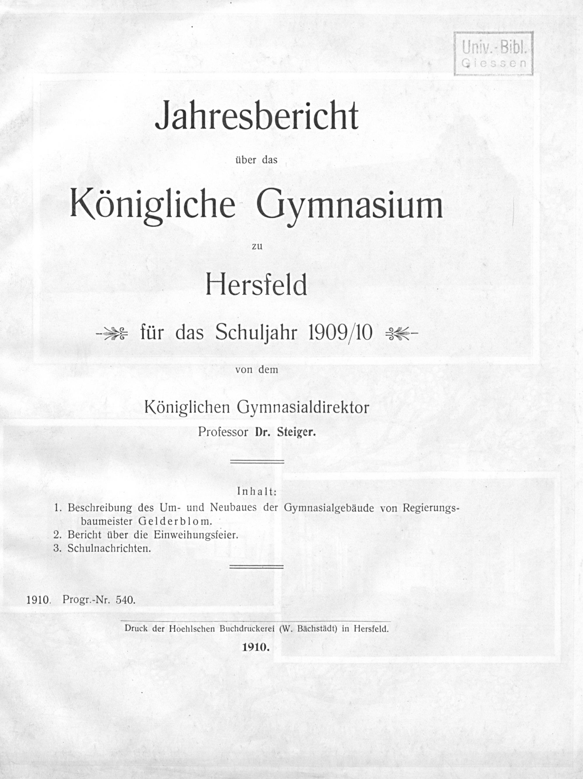 Beschreibung des Um- und Neubaues der Gymnasialgebäude / von Gelderblom