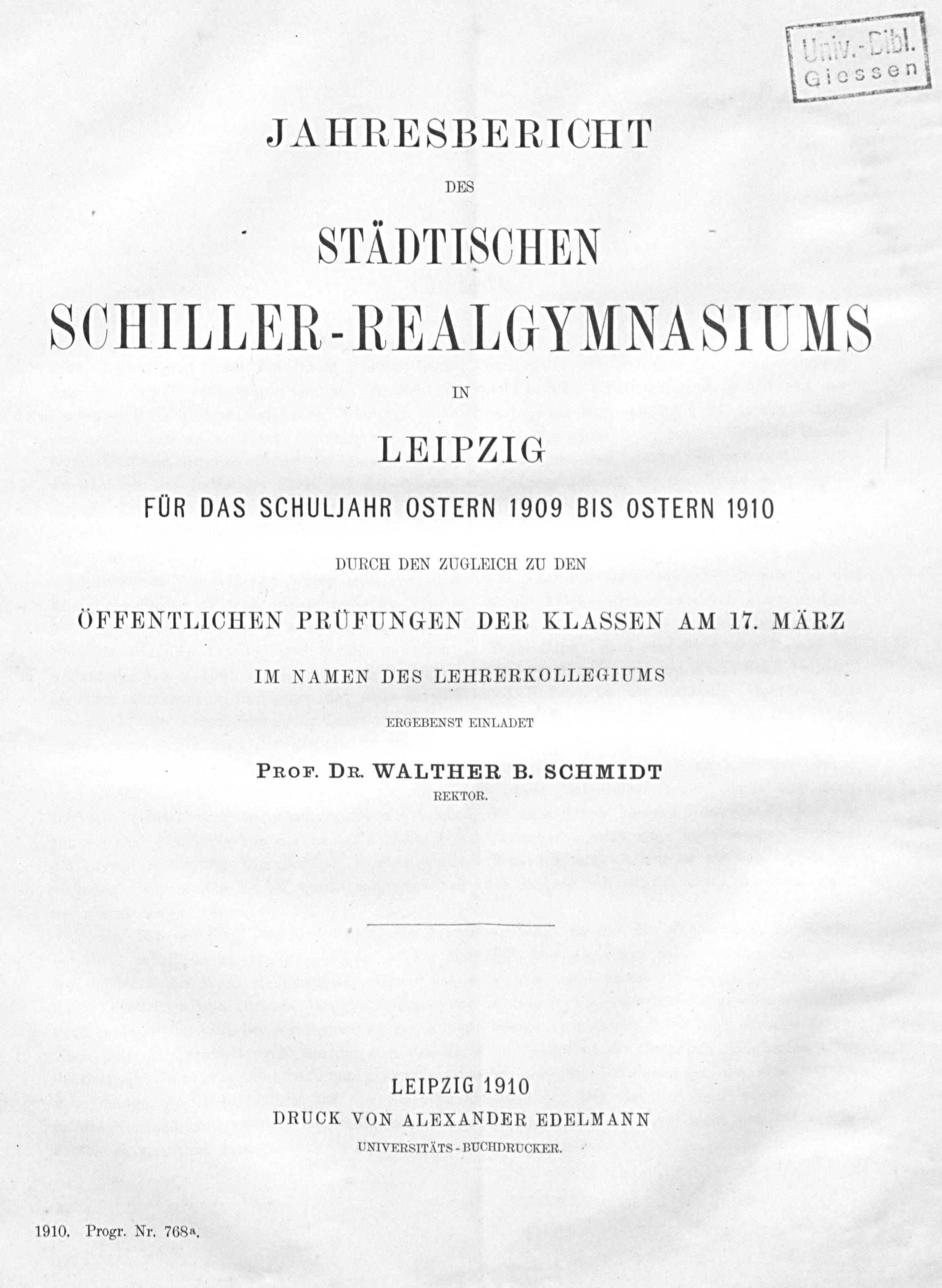 Bericht über die Eröffnung des Schiller-Realgymnasiums in Leipzig. - Eröffnungsrede