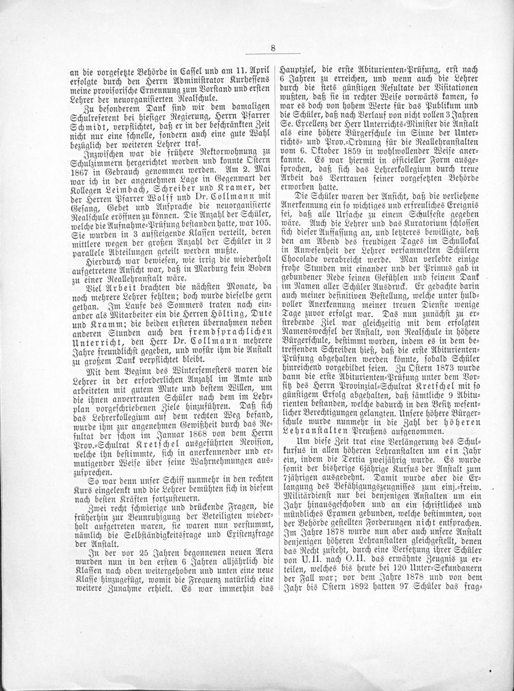 Bericht über die Jubelfeier zum 25jährigen Bestehen des Realprogymnasiums zu Marburg a.d. Lahn