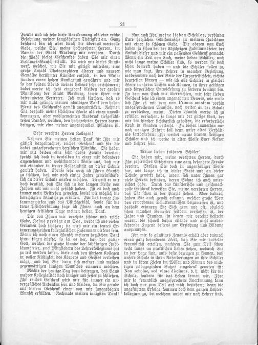 Bericht über die Jubelfeier zum 25jährigen Bestehen des Realprogymnasiums zu Marburg a.d. Lahn