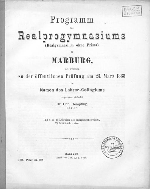 Programm des Realprogymnasiums (Realgymnasium ohne Prima) in Marburg