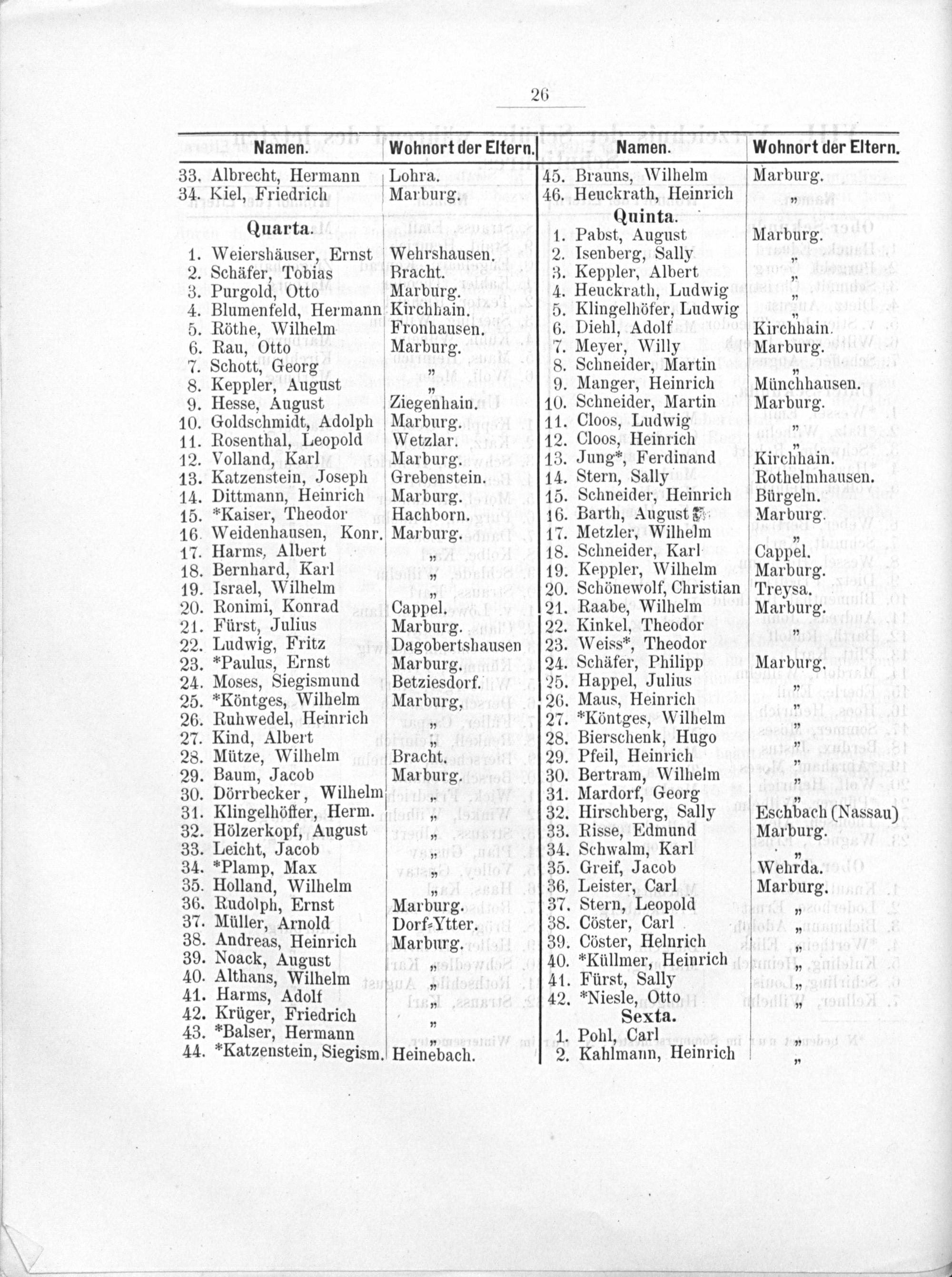 Programm des Realprogymnasiums (Realgymnasium ohne Prima) in Marburg