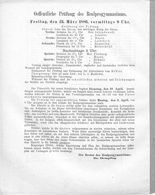 Programm des Realprogymnasiums (Realgymnasium ohne Prima) in Marburg
