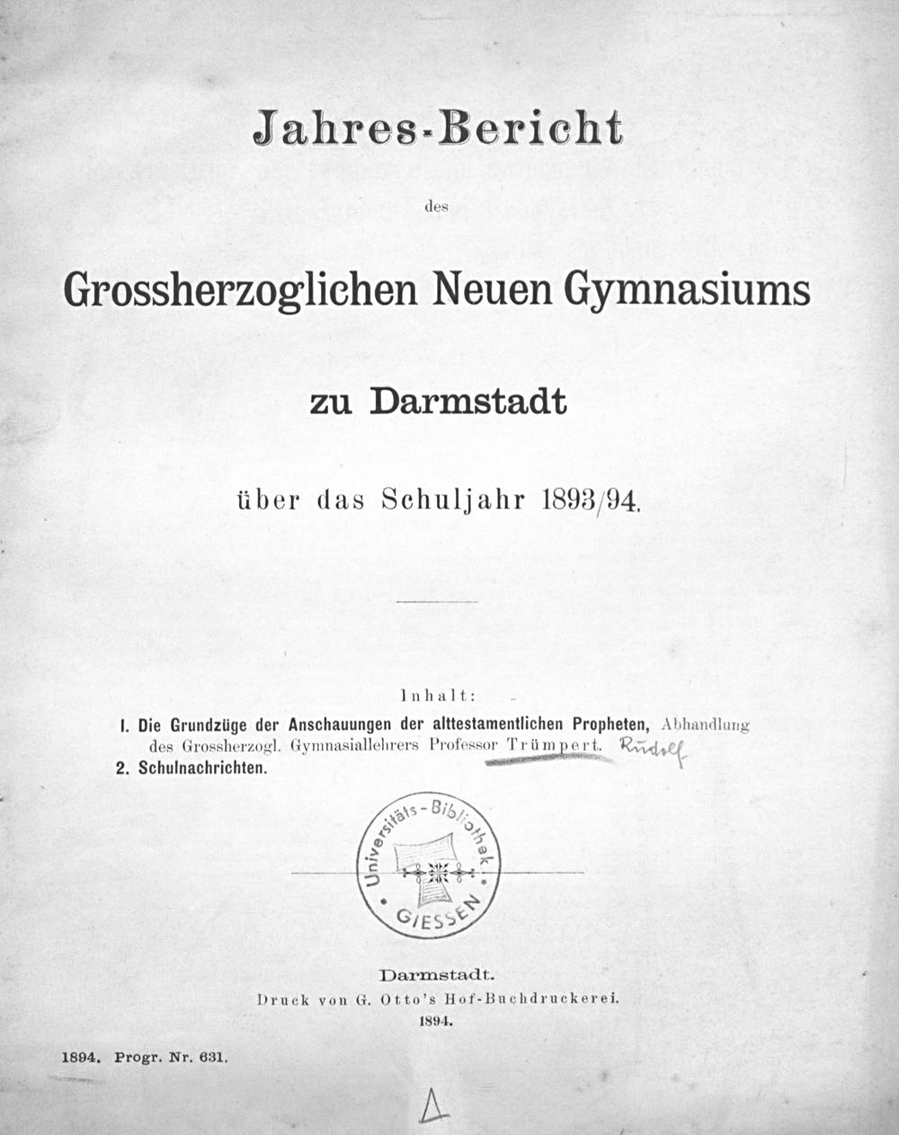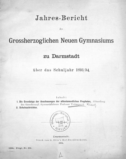 Die Grundzüge der religiösen und sittlichen Anschauung der alttestamentlichen Propheten, aus ihren Schriften durch zahlreiche, z.T. wörtlich angeführte Stellen nachgewiesen, nebst einer kurzen geschichtlichen und sachlichen Einleitung