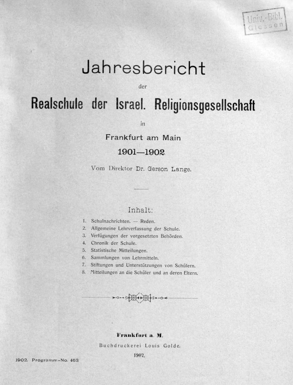 Jahresbericht der Realschule der Israelitischen Religions-Gesellschaft in Frankfurt am Main
