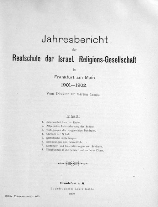 Jahresbericht der Realschule der Israelitischen Religions-Gesellschaft in Frankfurt am Main