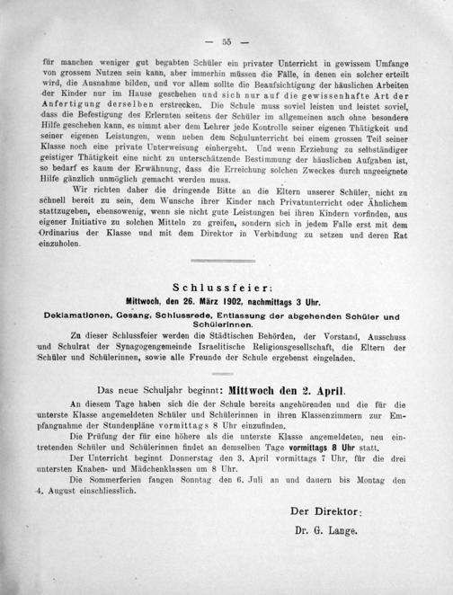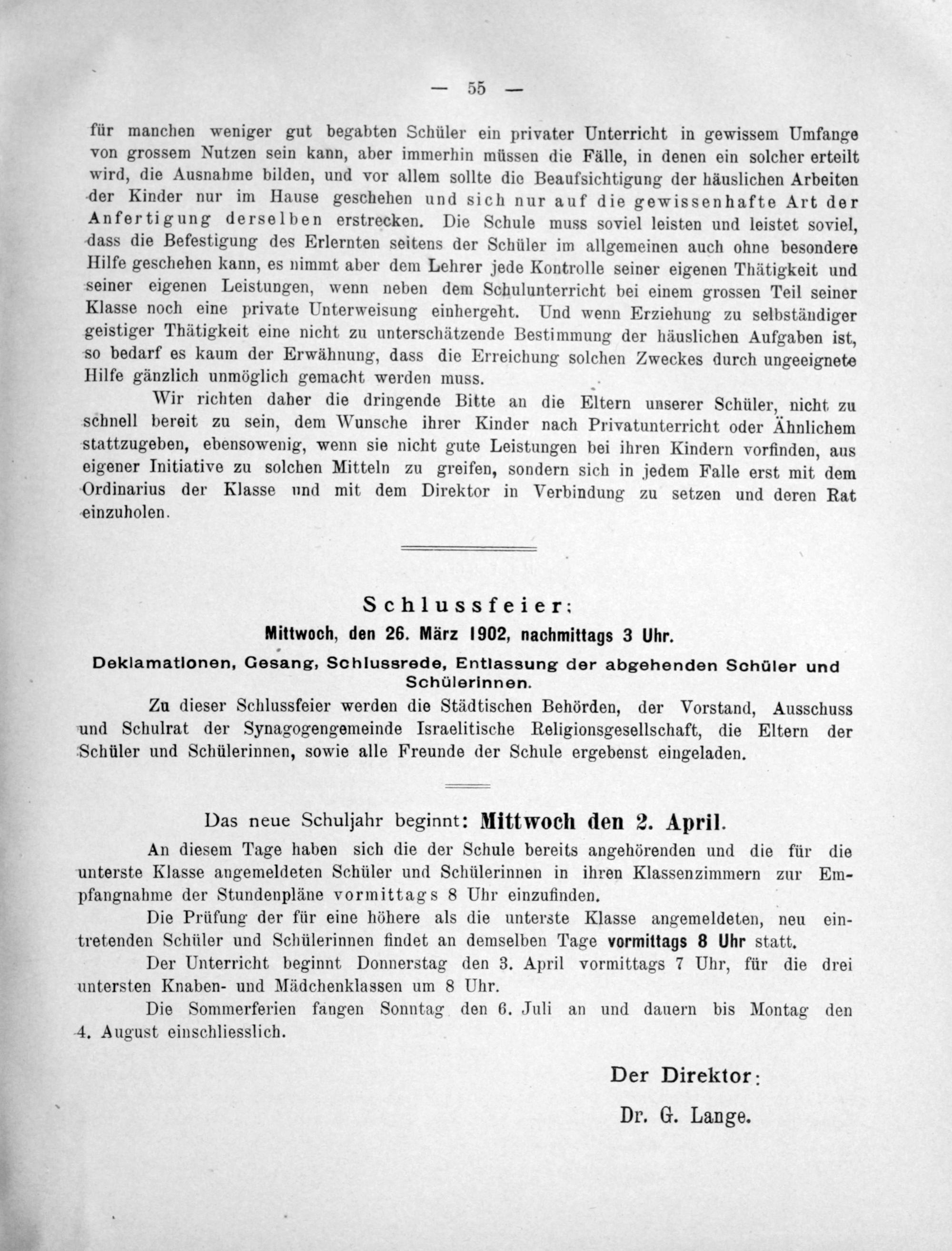Reden, gehalten bei der Amtseinführung des Direktors Gerson Lange