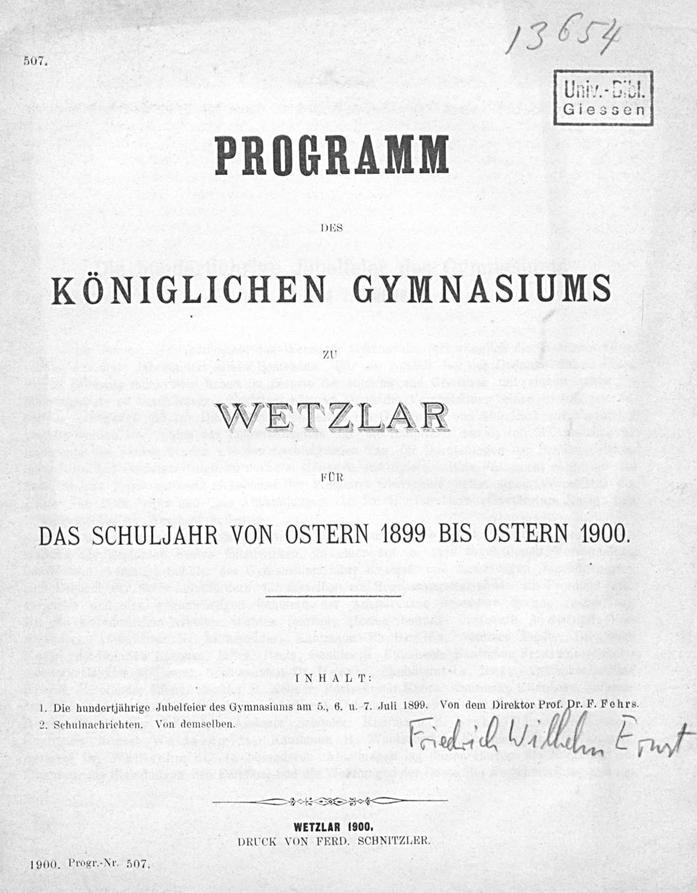 Programm des Königlichen Gymnasiums zu Wetzlar