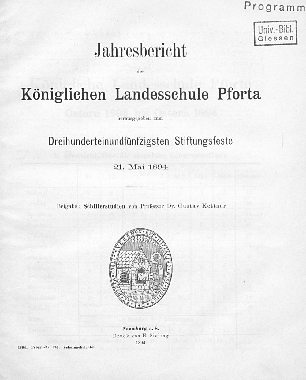 Bericht über die Feier des 350jährigen Bestehens der Anstalt