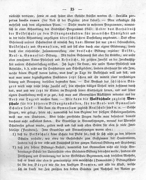 a) Vergleich durch Zahlen zwischen Sonst und Jetzt der Schule. (Veranlaßt durch bekannte Beziehung im November 1847.) b) Ein Philosoph und das heutige Volksschulwesen. c) Das offene Geheimnis des Wormser Schulwesens und dessen Kritik. d) Schwierigkeiten des Wormser Schulwesens. (Aus einem Briefe.)