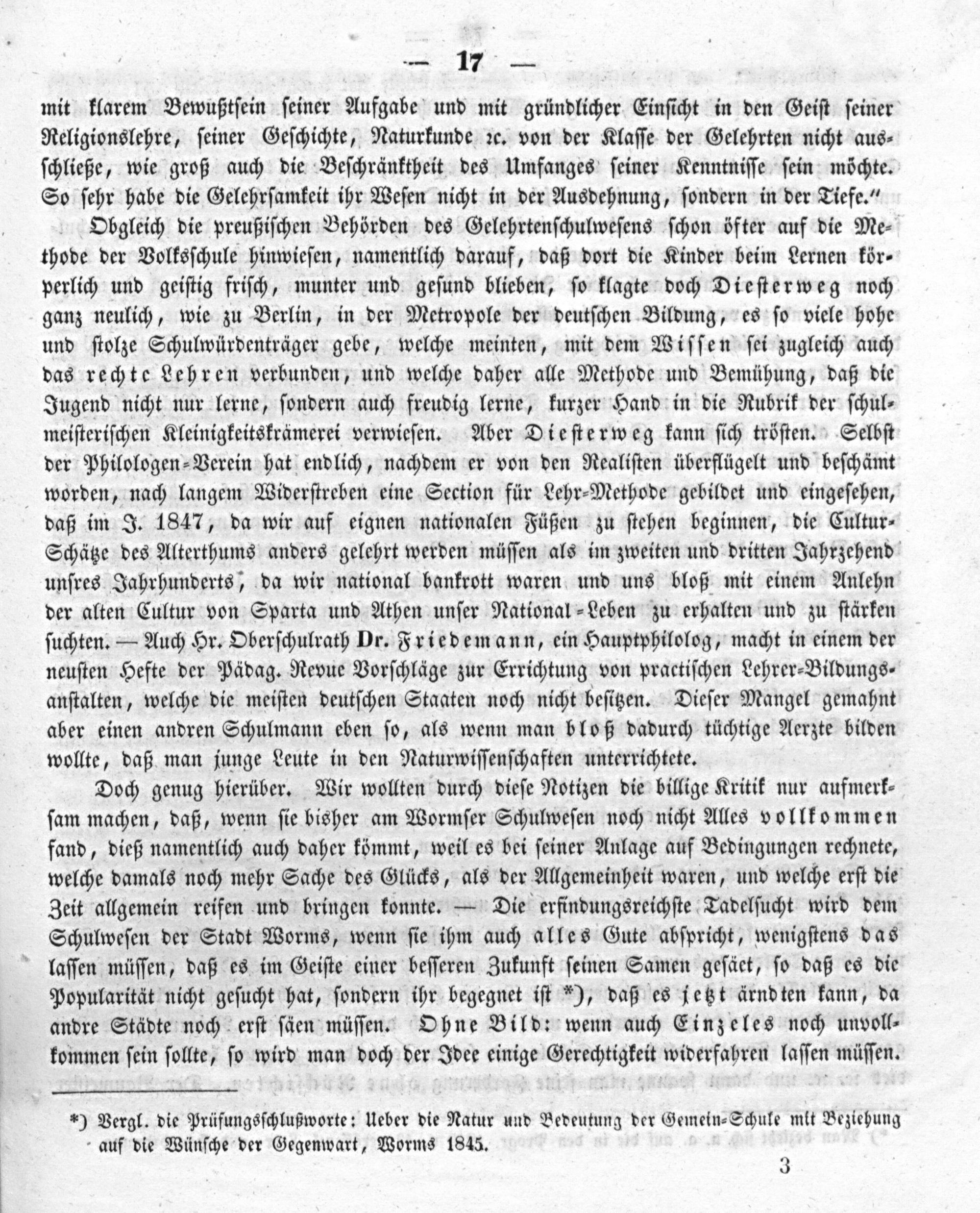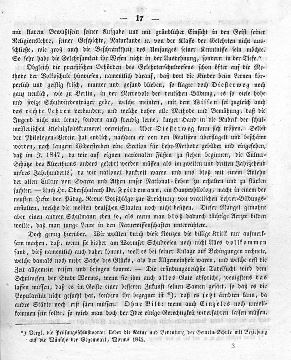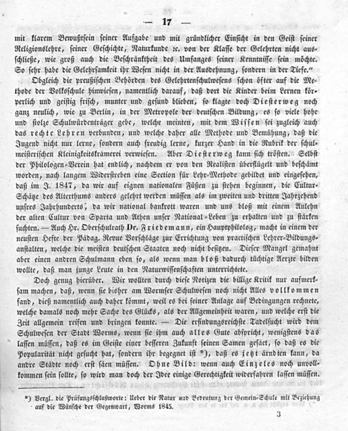 a) Vergleich durch Zahlen zwischen Sonst und Jetzt der Schule. (Veranlaßt durch bekannte Beziehung im November 1847.) b) Ein Philosoph und das heutige Volksschulwesen. c) Das offene Geheimnis des Wormser Schulwesens und dessen Kritik. d) Schwierigkeiten des Wormser Schulwesens. (Aus einem Briefe.)