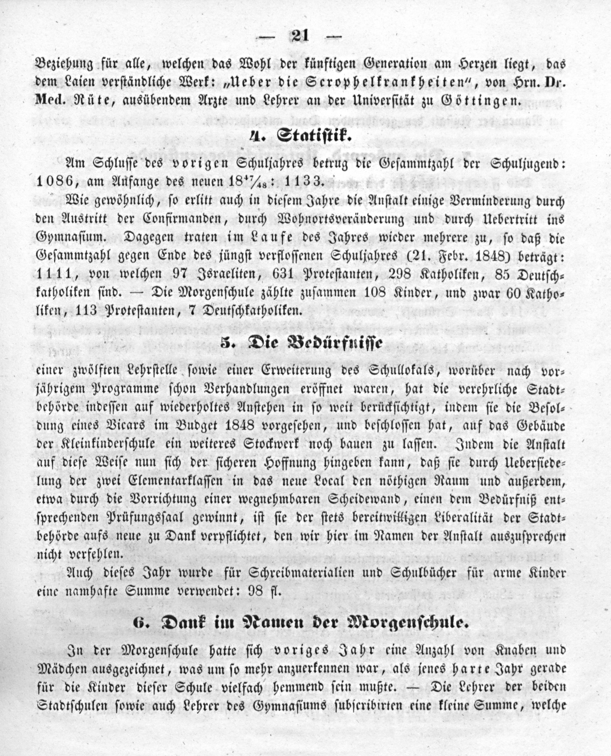 a) Vergleich durch Zahlen zwischen Sonst und Jetzt der Schule. (Veranlaßt durch bekannte Beziehung im November 1847.) b) Ein Philosoph und das heutige Volksschulwesen. c) Das offene Geheimnis des Wormser Schulwesens und dessen Kritik. d) Schwierigkeiten des Wormser Schulwesens. (Aus einem Briefe.)
