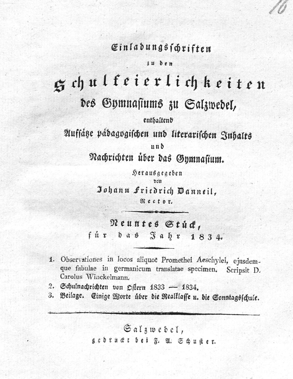 Einladungsschriften zu den Schulfeierlichkeiten des Gymnasiums zu Salzwedel