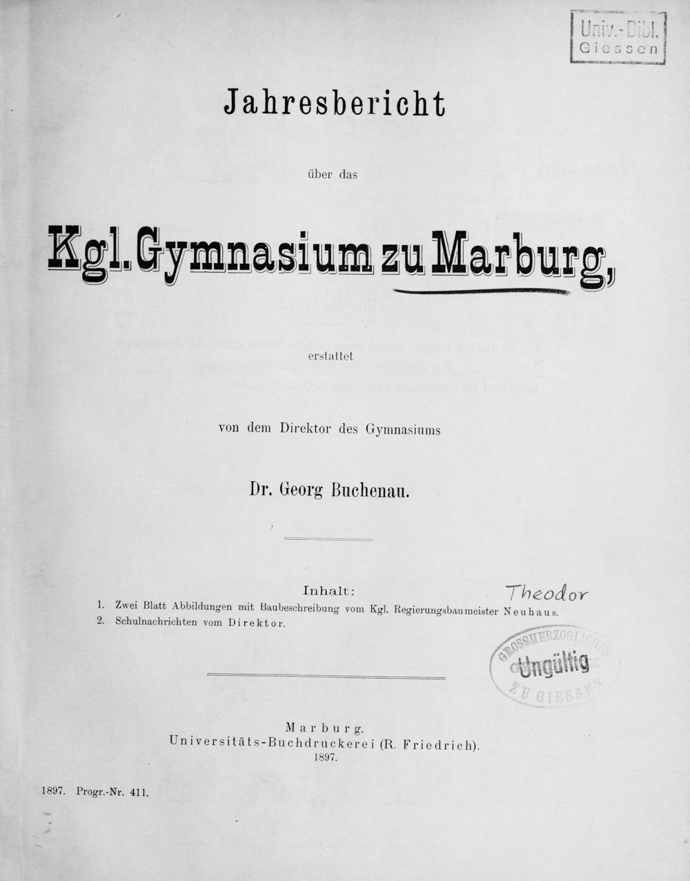 Jahresbericht des Königlichen Gymnasiums zu Marburg