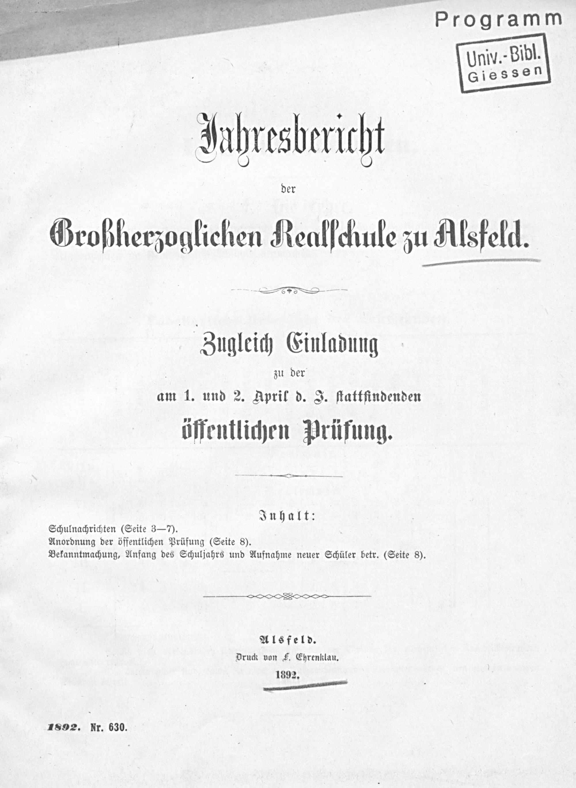 Jahresbericht der Großherzoglichen Realschule zu Alsfeld