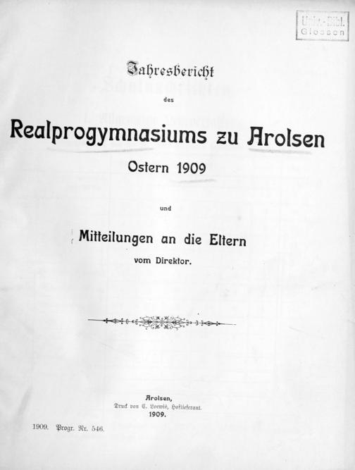 Jahres-Bericht über das Schuljahr ... und Mitteilungen an die Eltern, Pfleger und Schüler vom Direktor