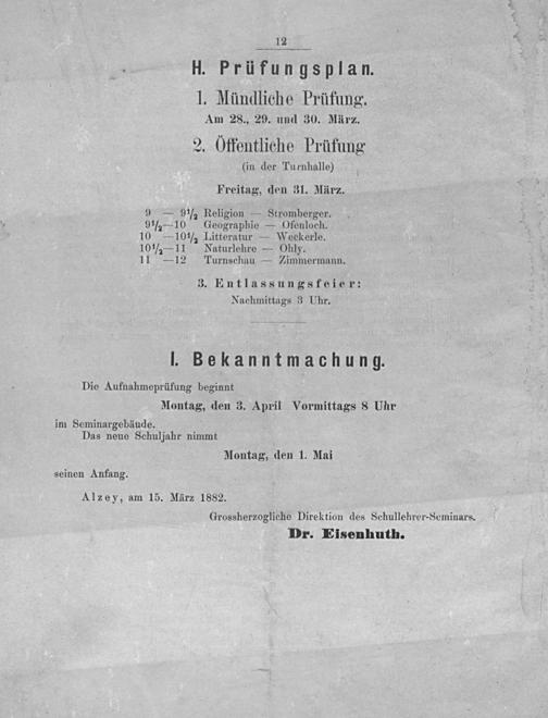 Jahresbericht des Großherzoglichen Lehrer-Seminars zu Alzey