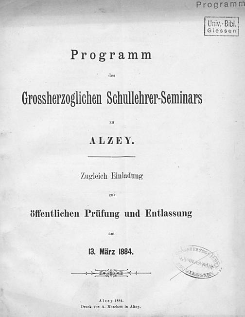 Jahresbericht des Großherzoglichen Lehrer-Seminars zu Alzey