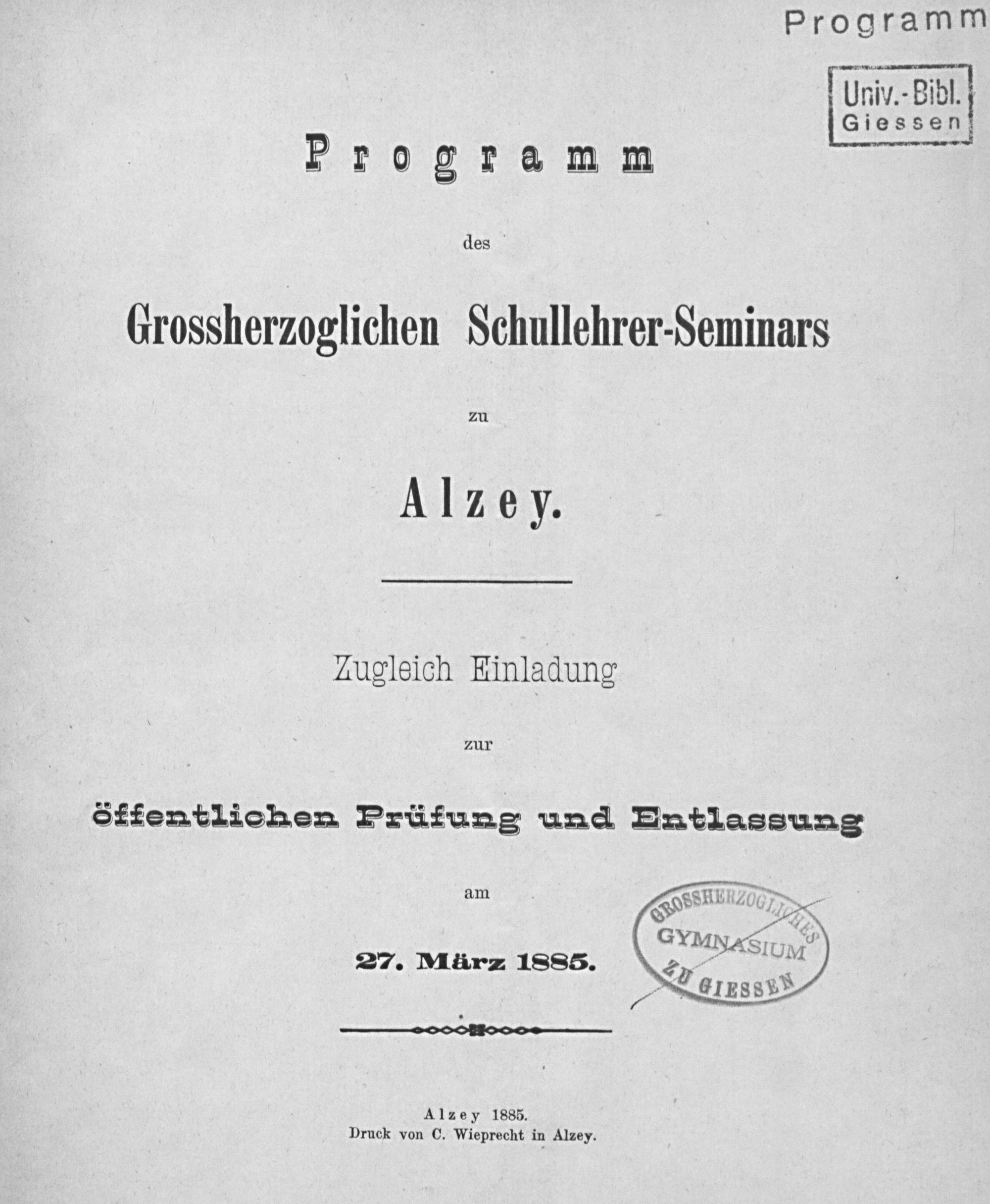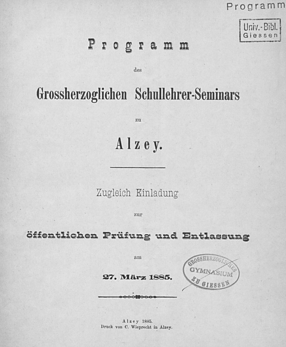Jahresbericht des Großherzoglichen Lehrer-Seminars zu Alzey