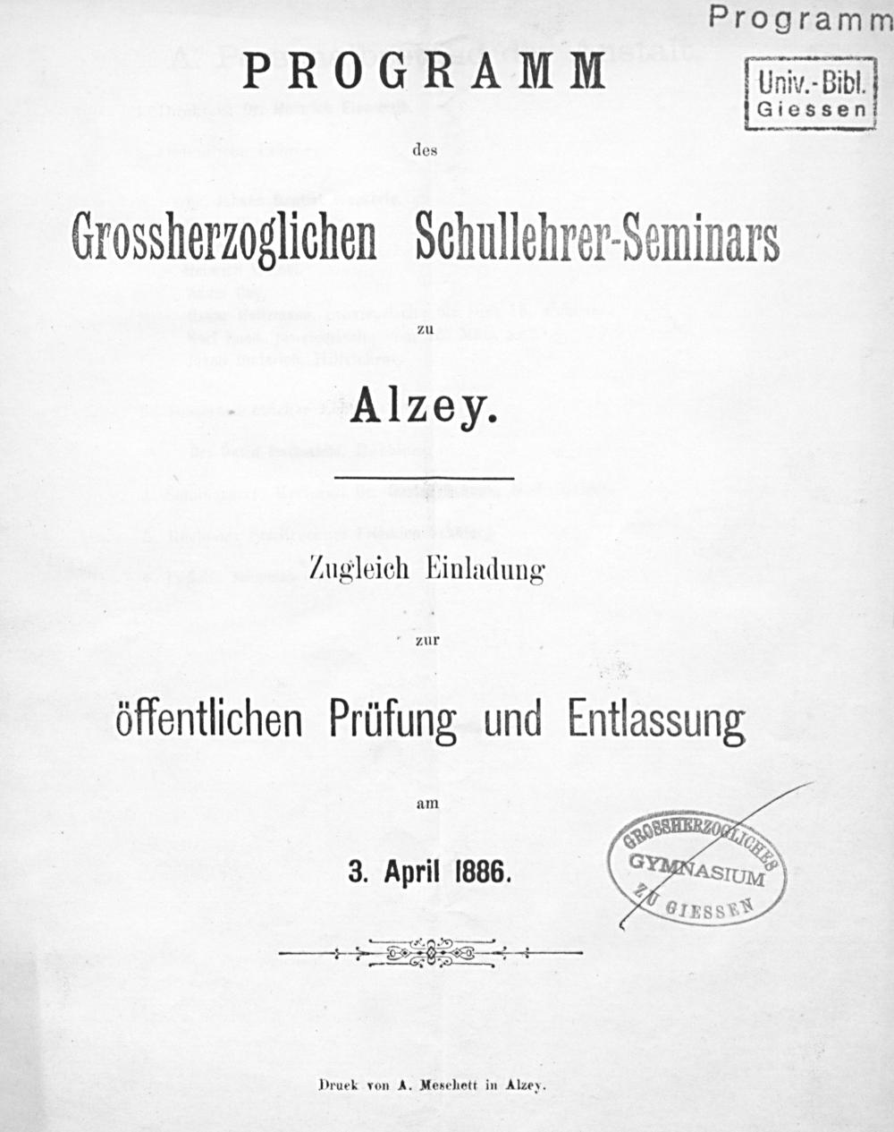 Jahresbericht des Großherzoglichen Lehrer-Seminars zu Alzey