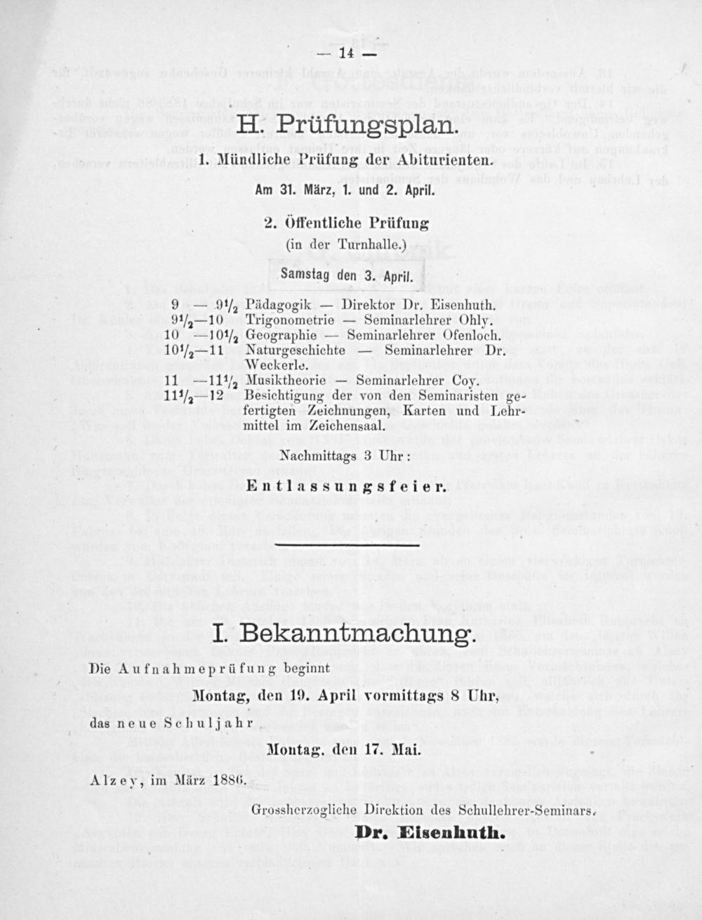 Jahresbericht des Großherzoglichen Lehrer-Seminars zu Alzey