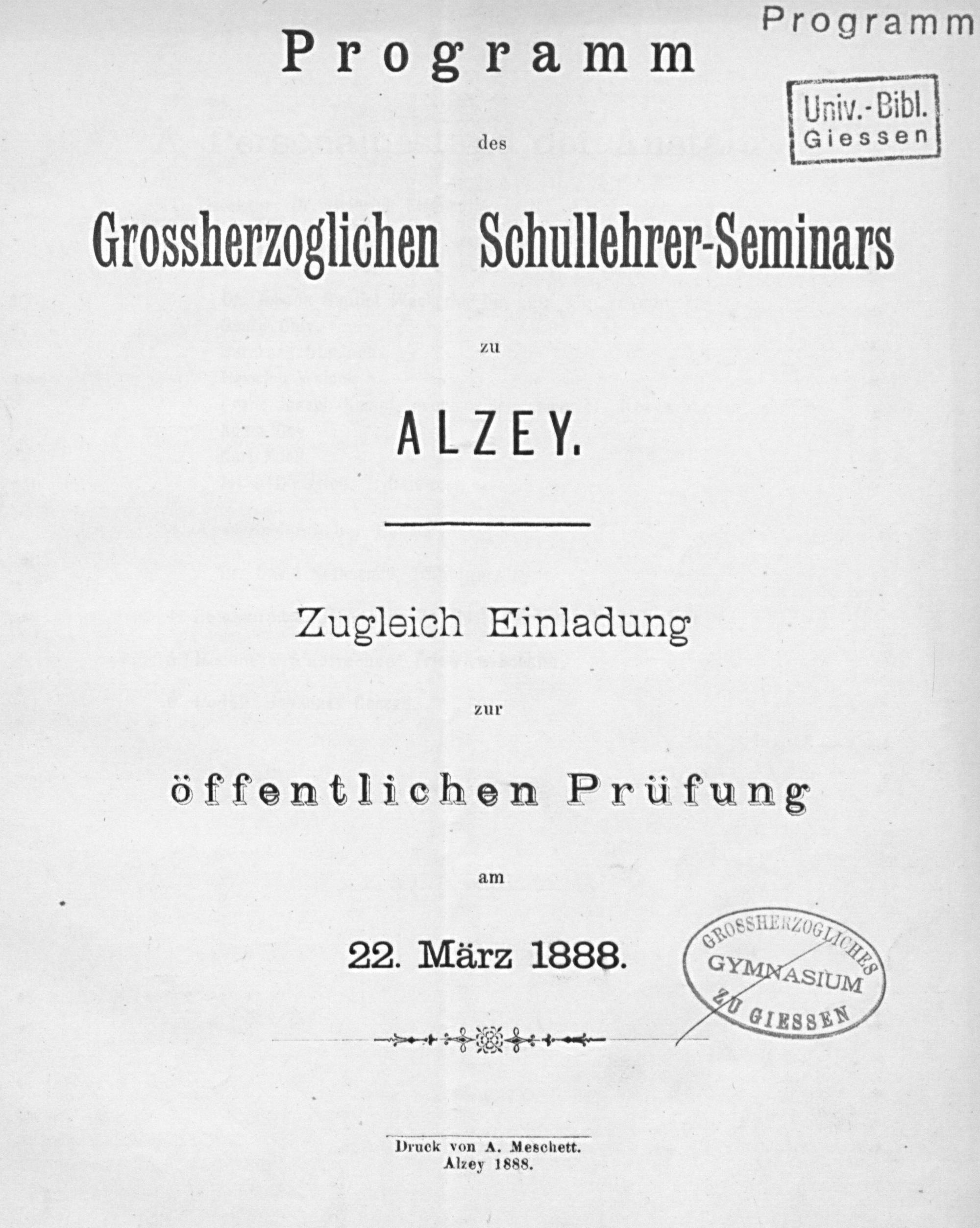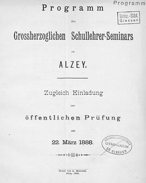 Jahresbericht des Großherzoglichen Lehrer-Seminars zu Alzey