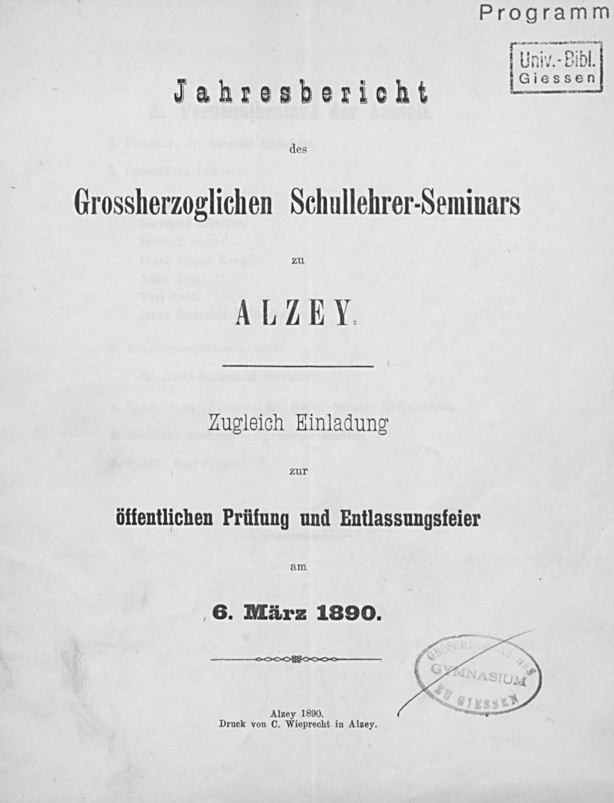 Jahresbericht des Großherzoglichen Lehrer-Seminars zu Alzey