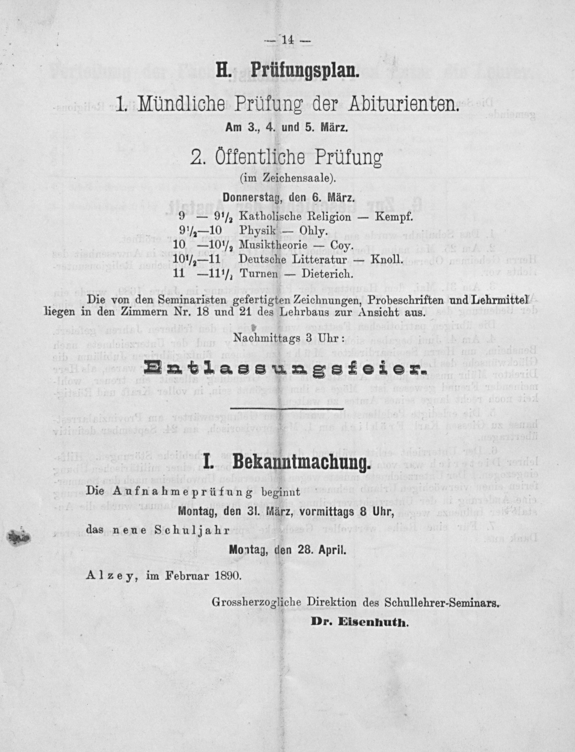 Jahresbericht des Großherzoglichen Lehrer-Seminars zu Alzey