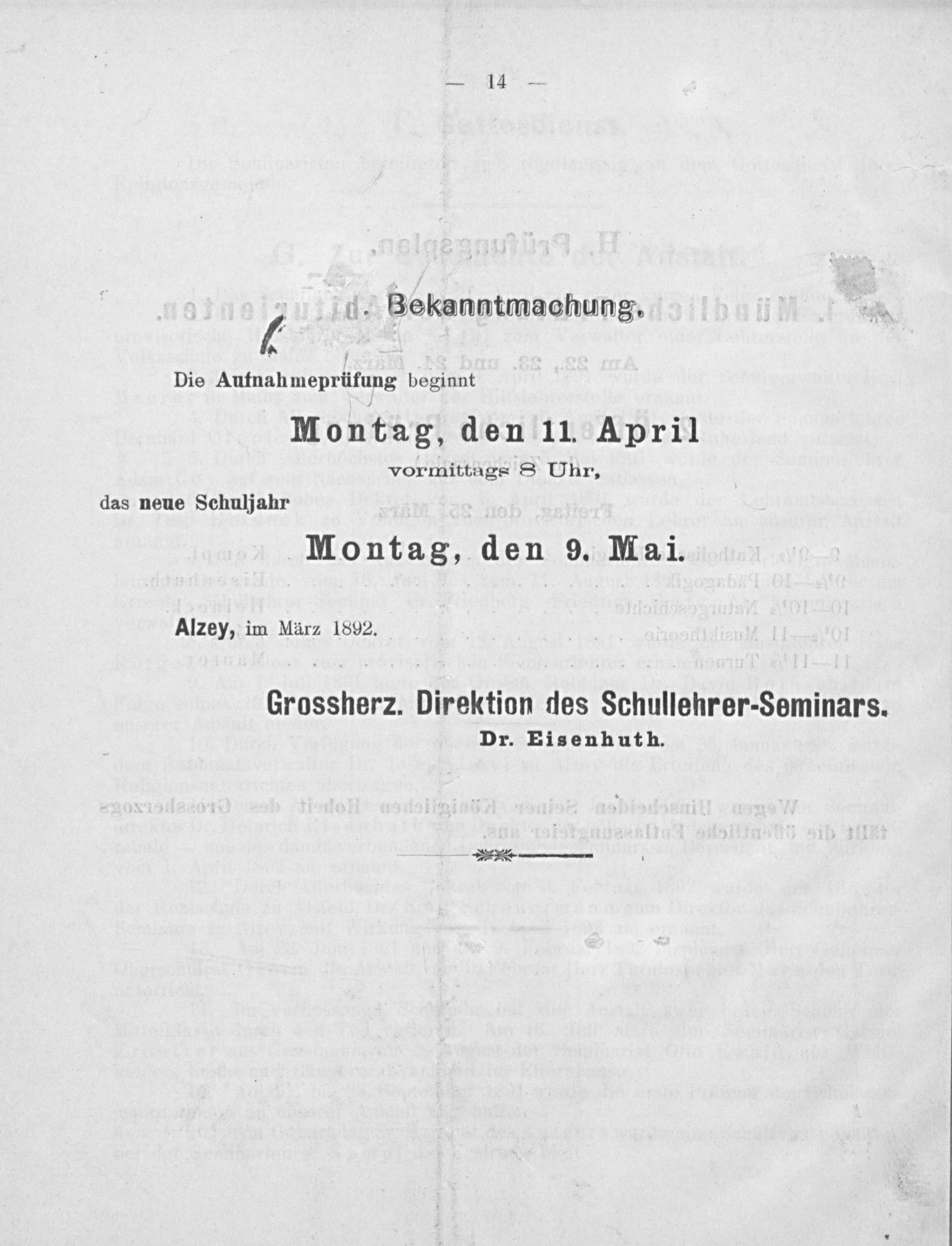 Jahresbericht des Großherzoglichen Lehrer-Seminars zu Alzey