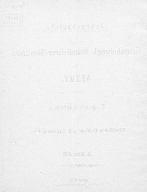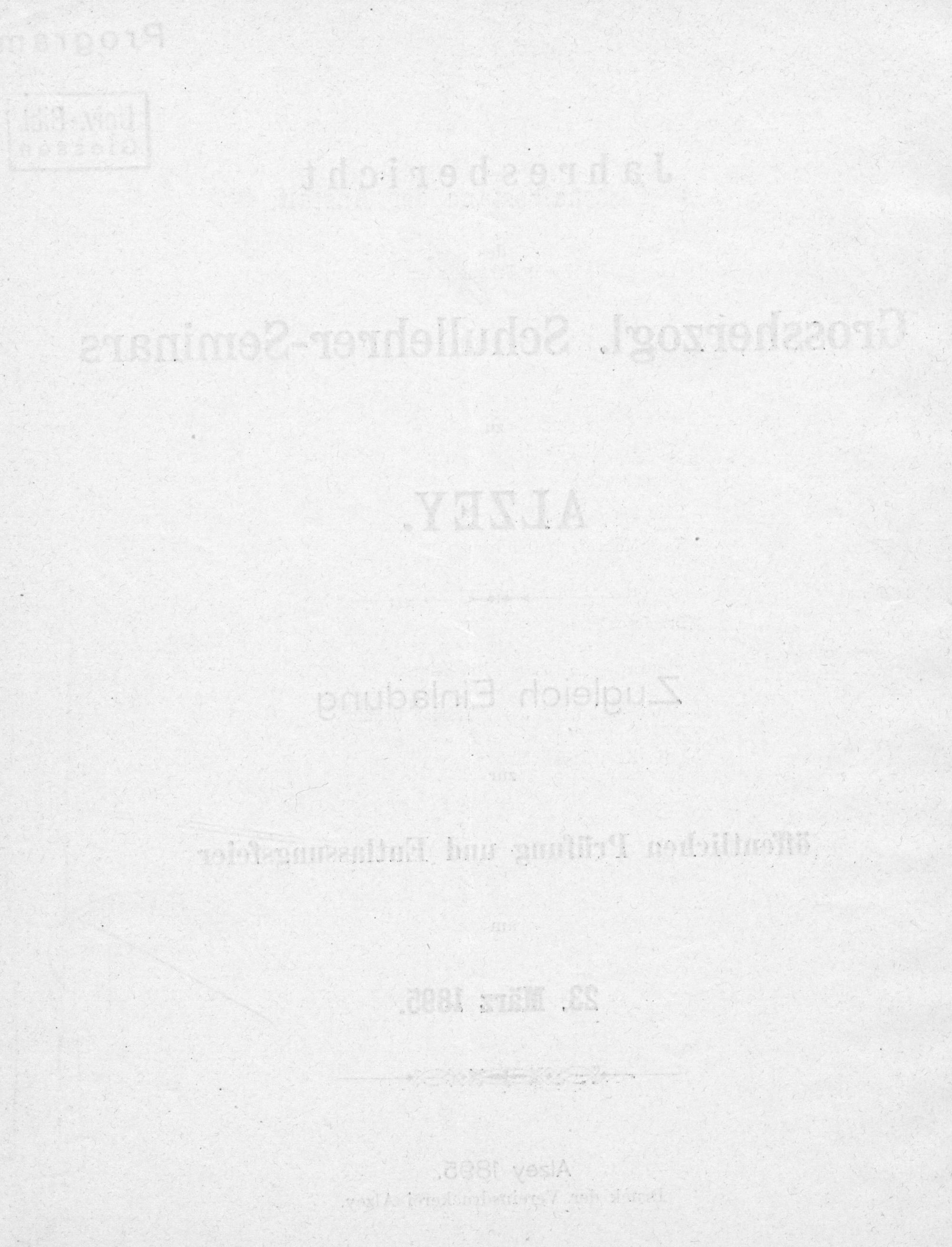 Jahresbericht des Großherzoglichen Lehrer-Seminars zu Alzey