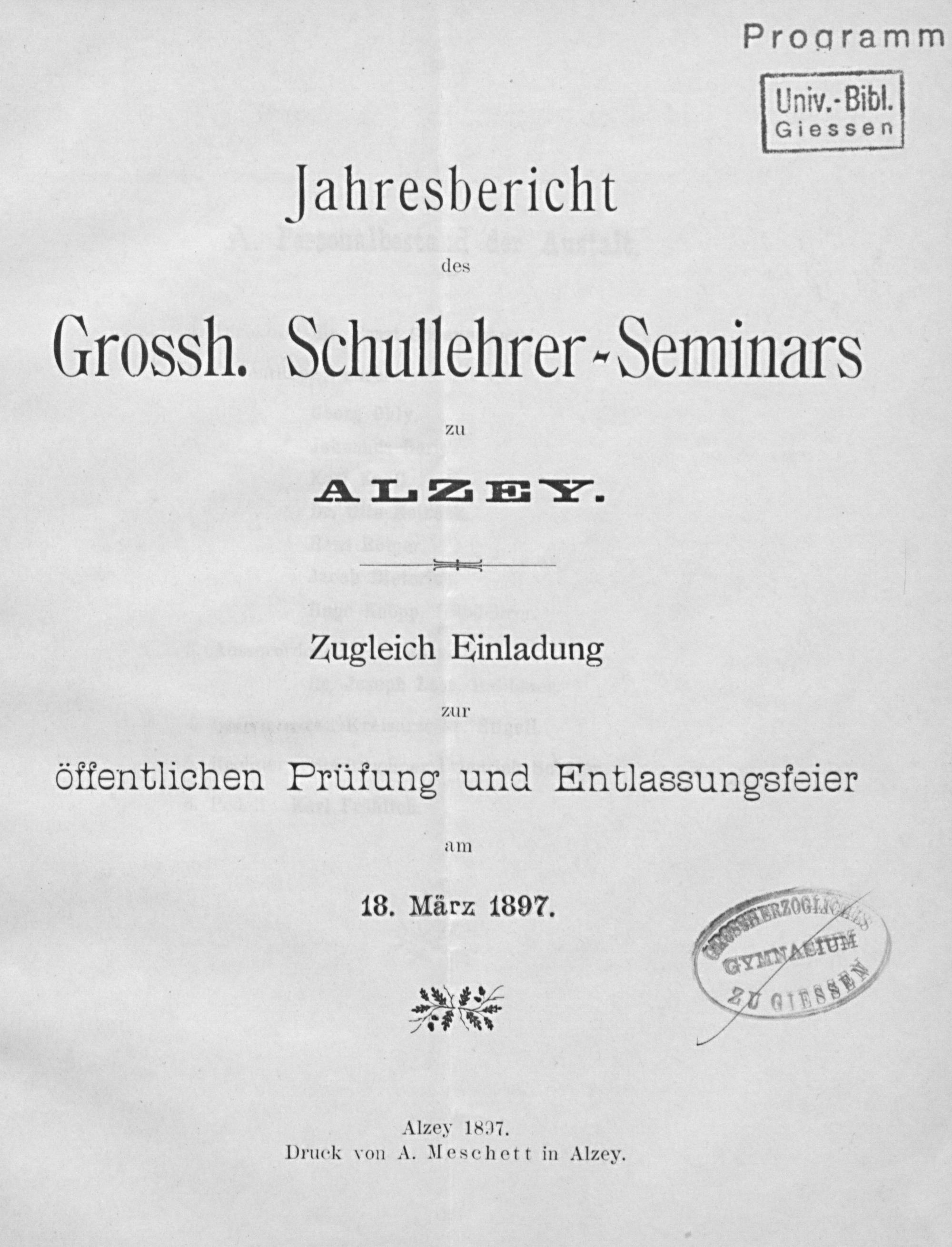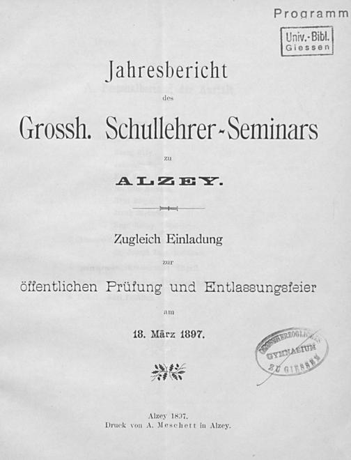 Jahresbericht des Großherzoglichen Lehrer-Seminars zu Alzey