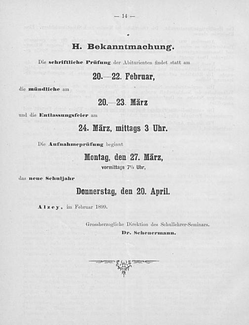 Jahresbericht des Großherzoglichen Lehrer-Seminars zu Alzey