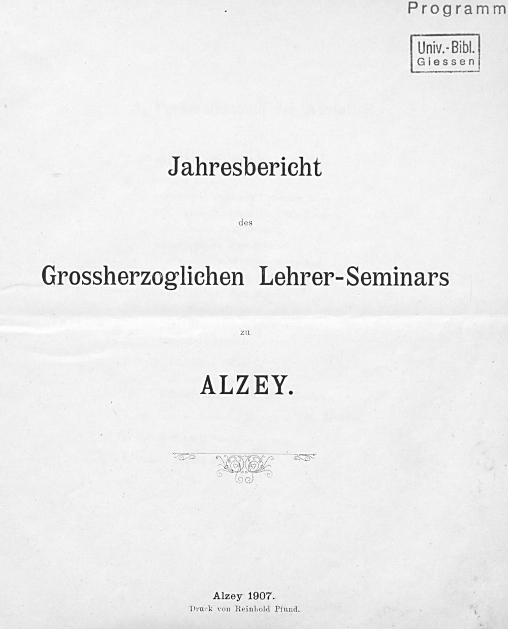 Jahresbericht des Großherzoglichen Lehrer-Seminars zu Alzey