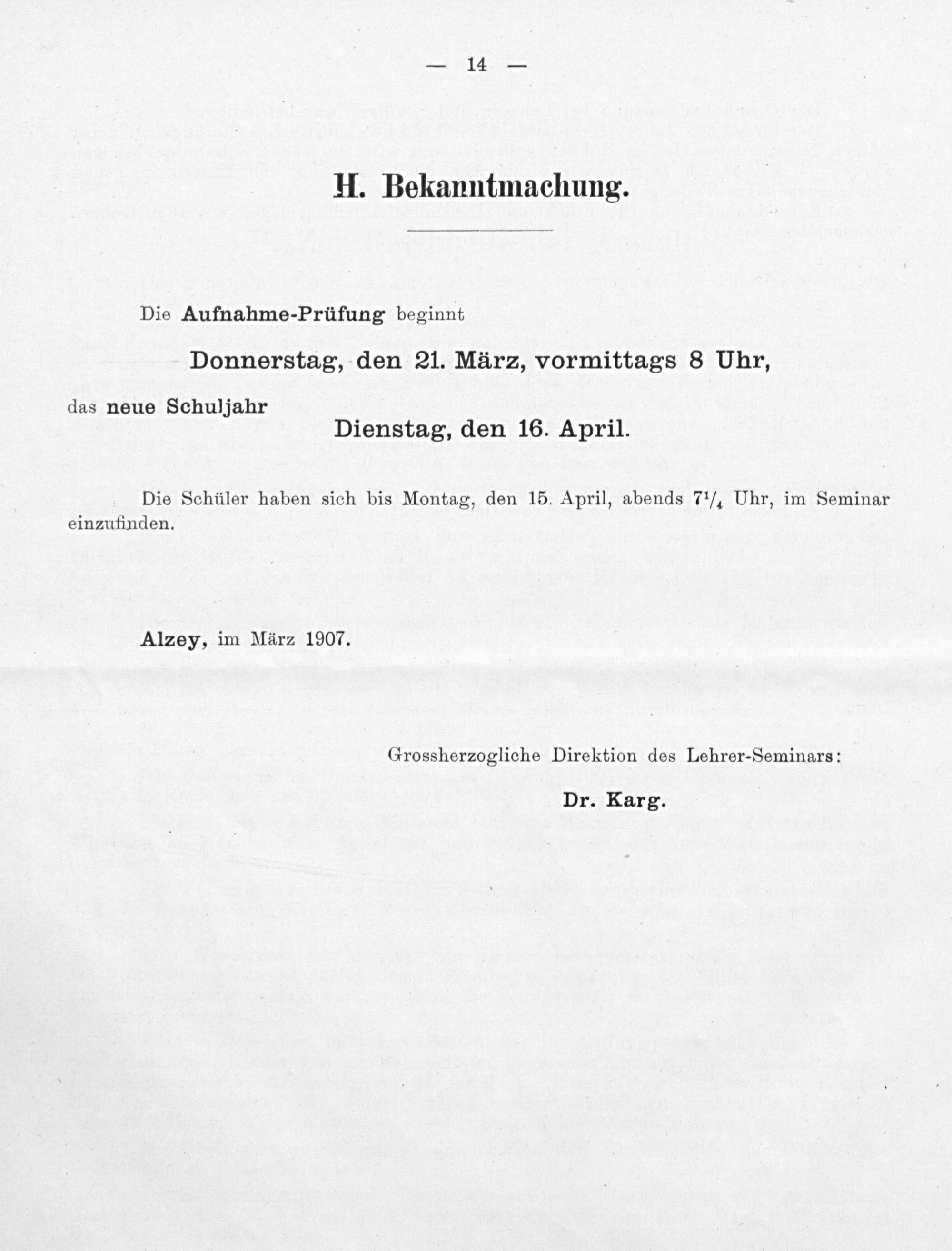 Jahresbericht des Großherzoglichen Lehrer-Seminars zu Alzey