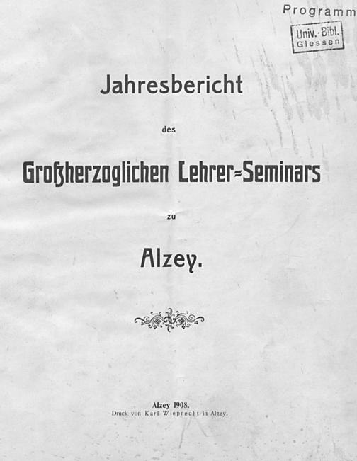 Jahresbericht des Großherzoglichen Lehrer-Seminars zu Alzey