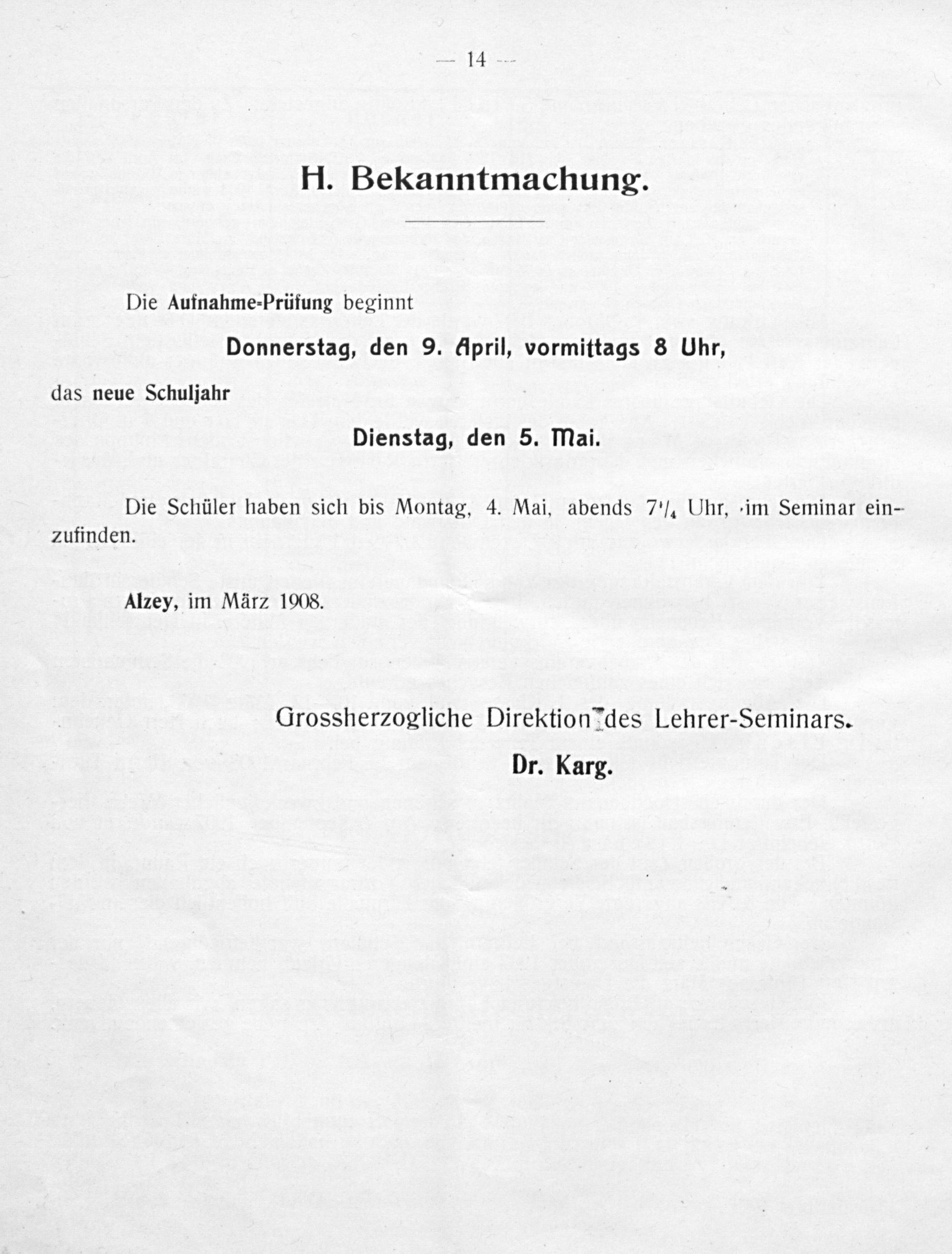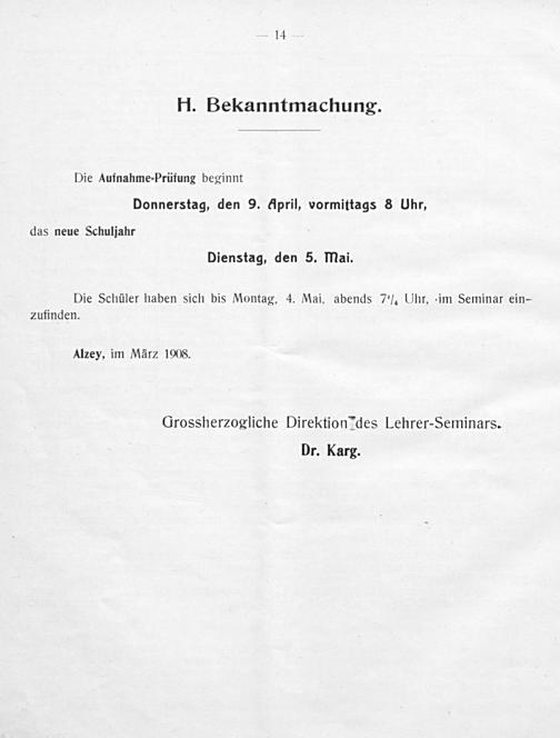 Jahresbericht des Großherzoglichen Lehrer-Seminars zu Alzey