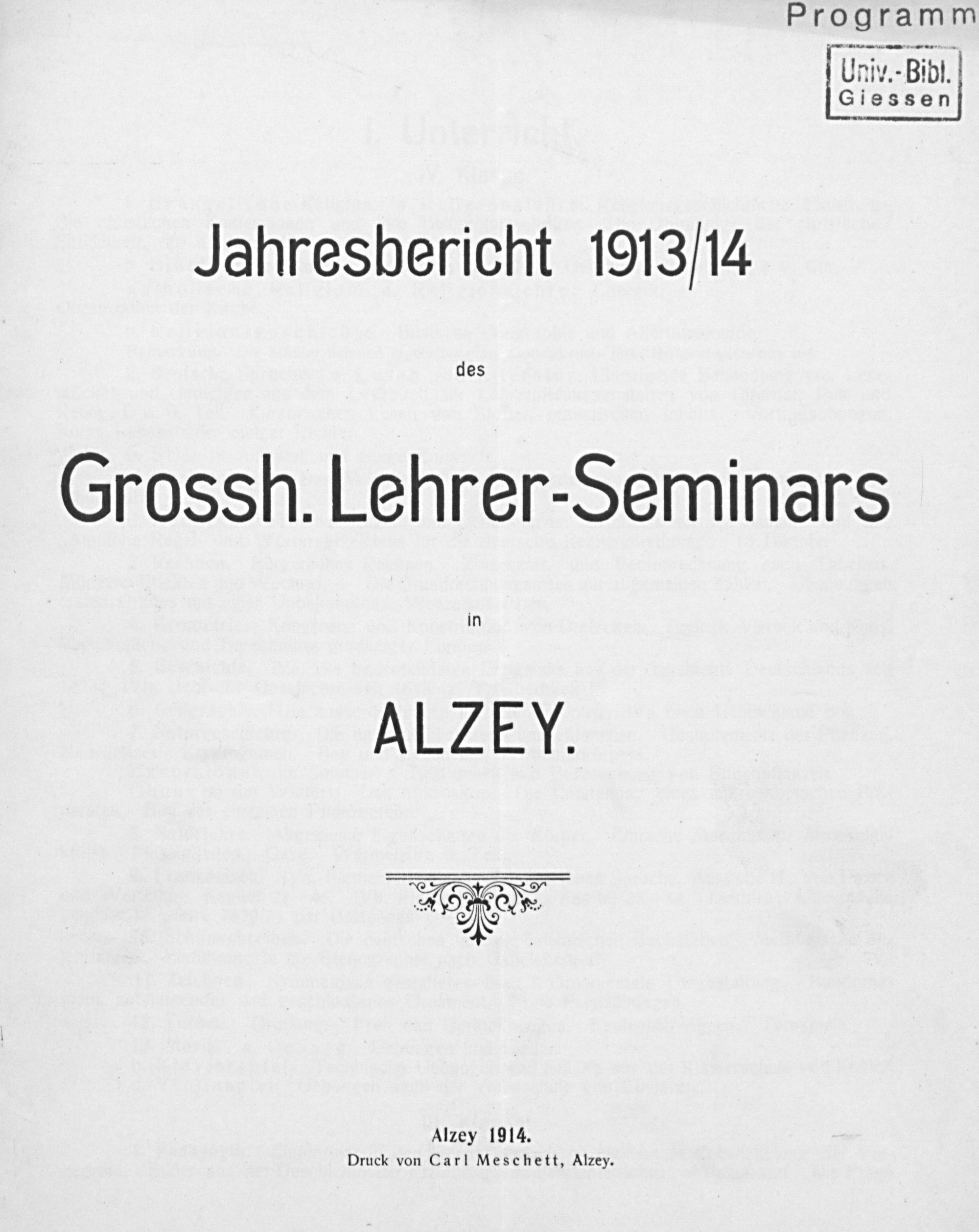 Jahresbericht des Großherzoglichen Lehrer-Seminars zu Alzey