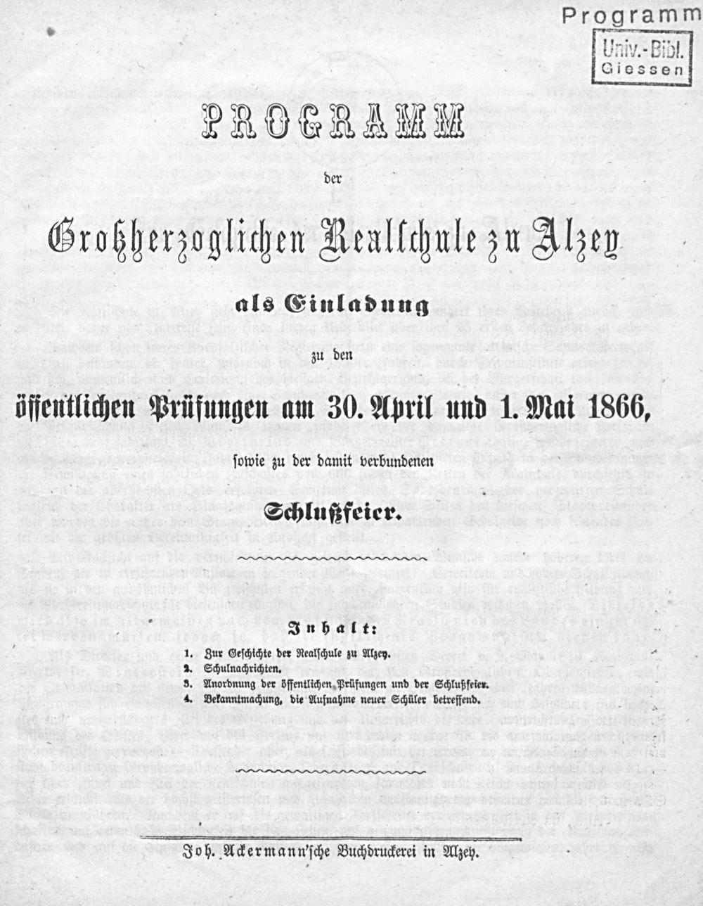 Ein Beitrag zur Förderung des Turnunterrichtes an der Großherzogl. Realschule, den Stadtschulen und Privatschulen zu Alzey