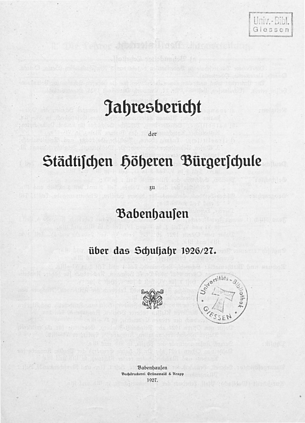 Jahresbericht der Städtischen Höheren Bürgerschule zu Babenhausen über das Schuljahr ...
