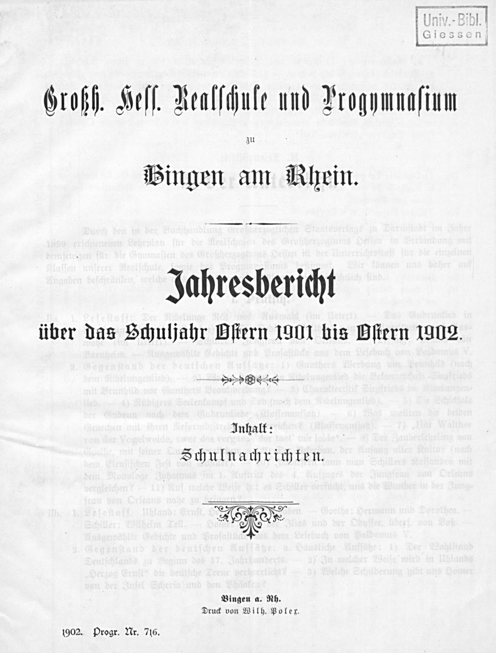 Bericht über das Schuljahr ...