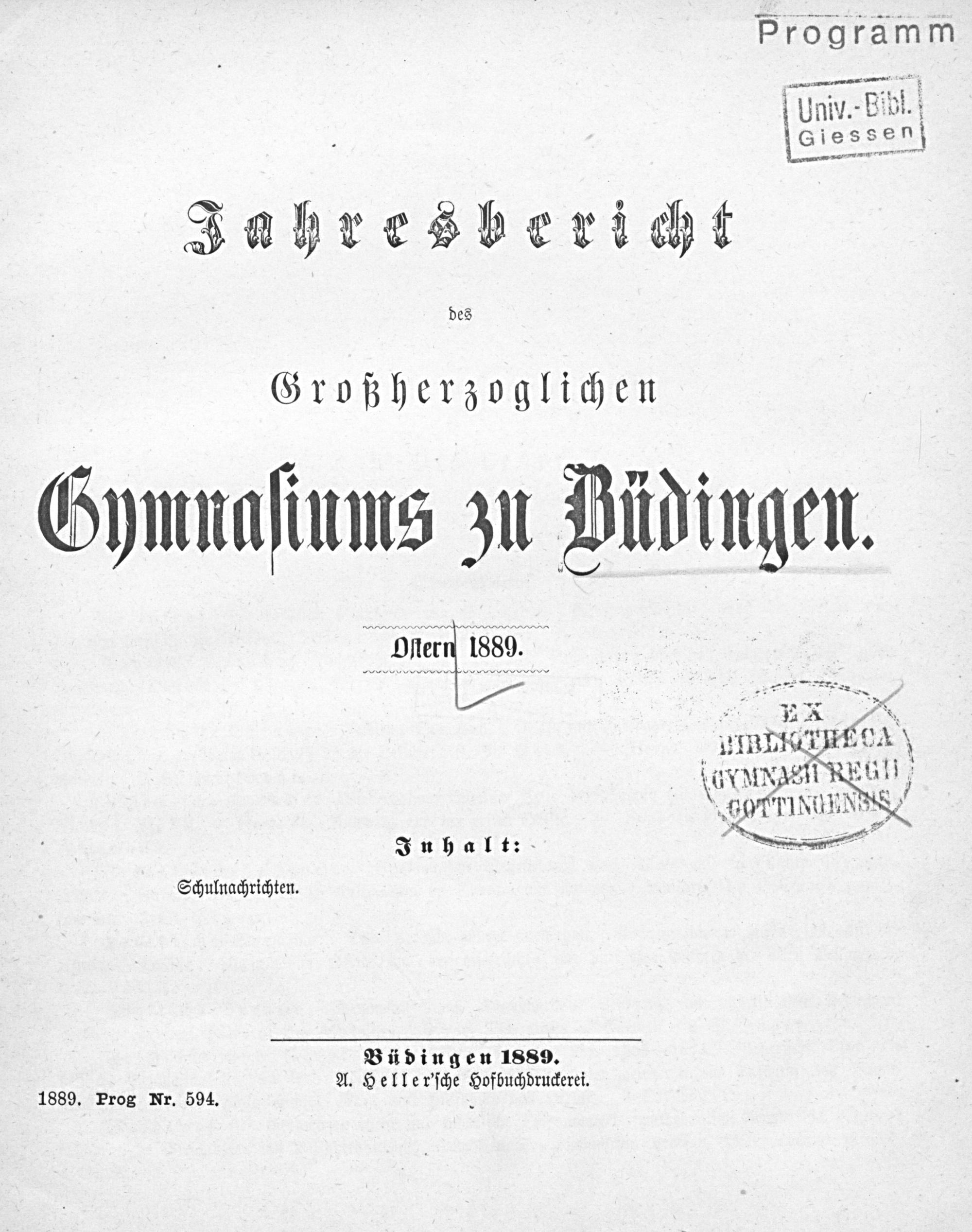 Jahresbericht des Großherzoglichen Gymnasiums zu Büdingen