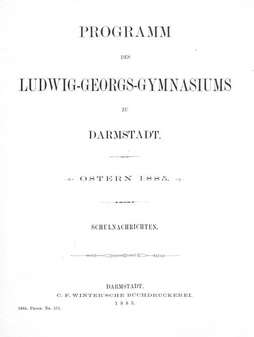 Programm des Großherzoglichen Ludwig-Georgs-Gymnasiums und der Vorschule der beiden Gymnasien zu Darmstadt