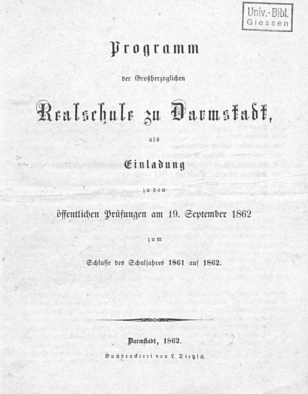 Programm der Großherzoglichen Realschule zu Darmstadt