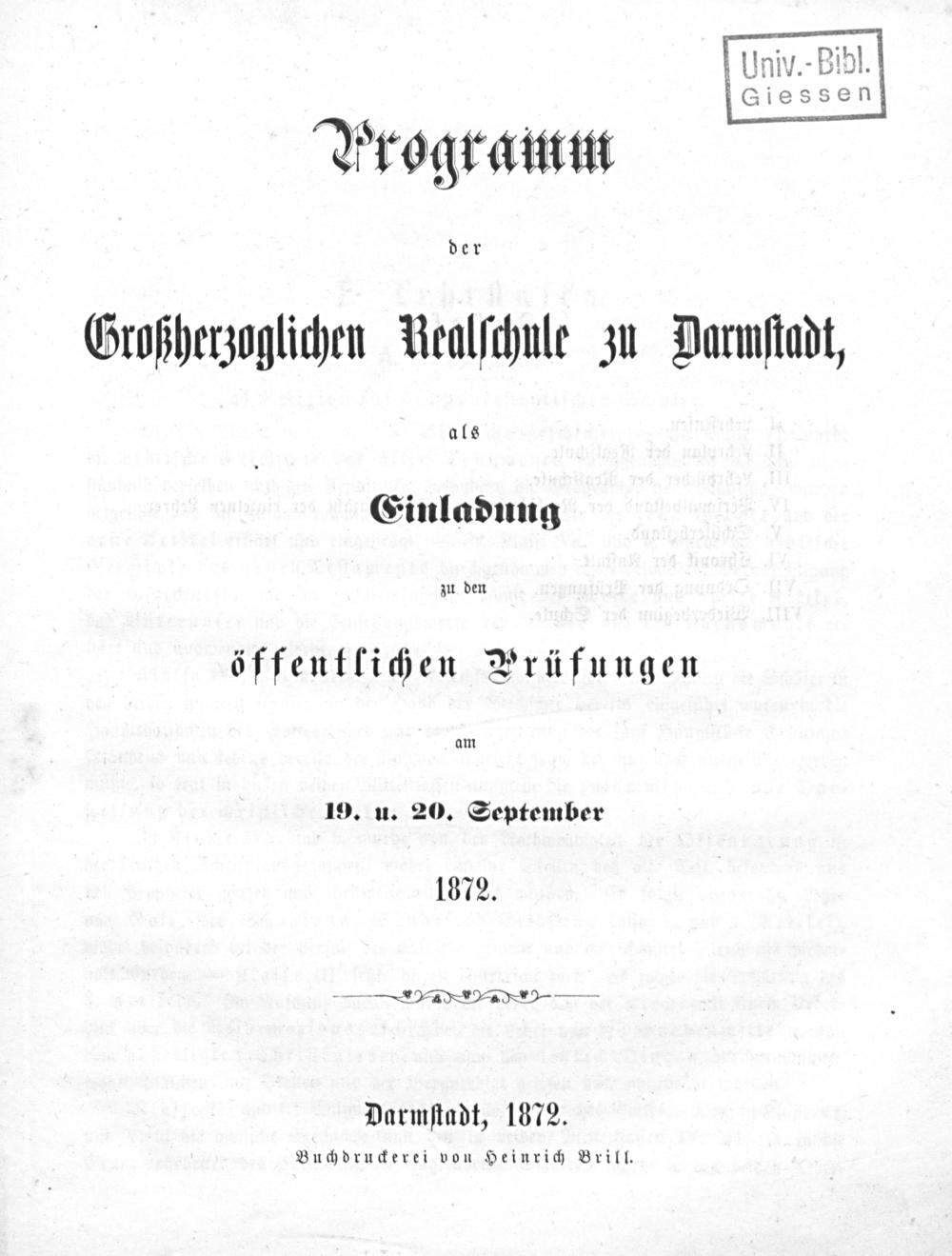 Programm der Großherzoglichen Realschule zu Darmstadt