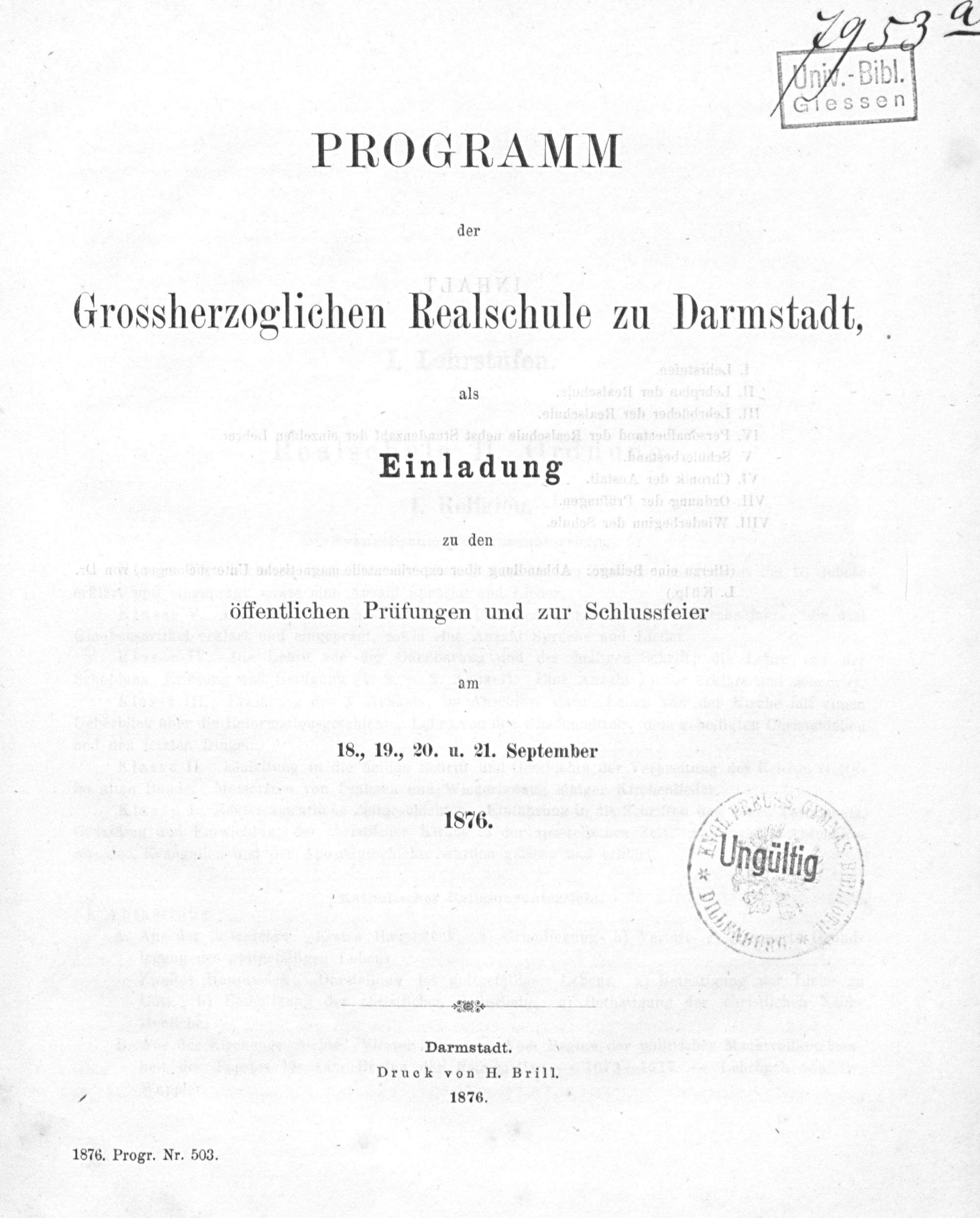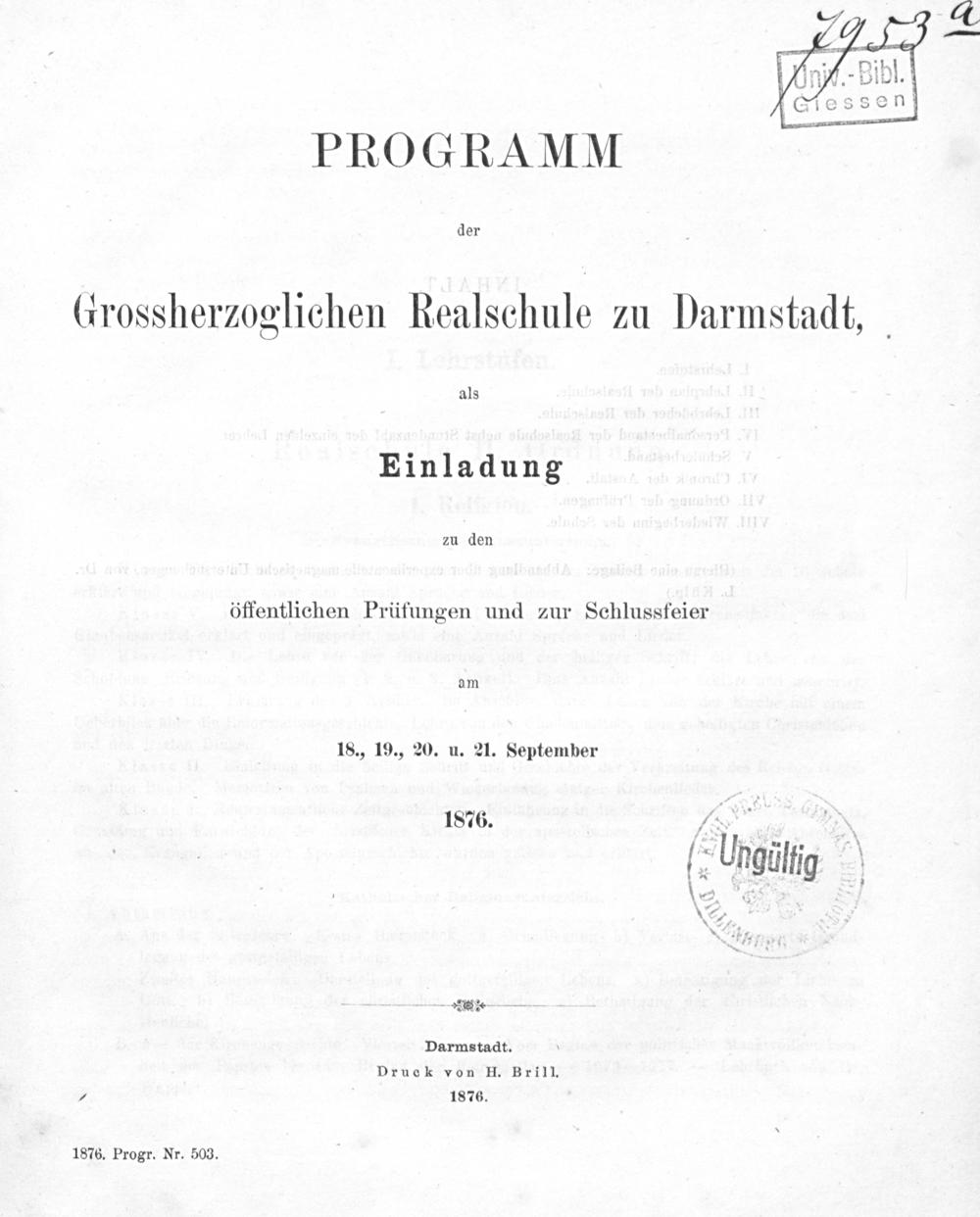 Programm der Großherzoglichen Realschule zu Darmstadt