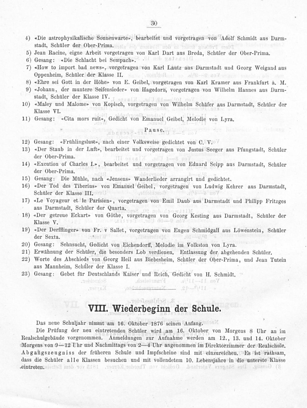 Programm der Großherzoglichen Realschule zu Darmstadt